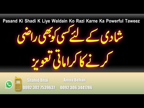 es video mein ham ne ap ko pasand ki shadi k liye waldain ko razi karne ka powerful wazifa b bataia ha aur es Maqsad k liye Nad e Ali k taweez ka b tazkra kia ha.